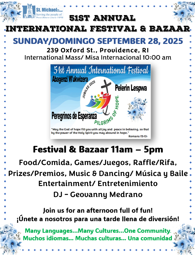 We are a diverse community of believers who share their faith, time, and treasure in service to both God and community. We are Many Languages, Many Cultures, One Community in Christ our Lord.